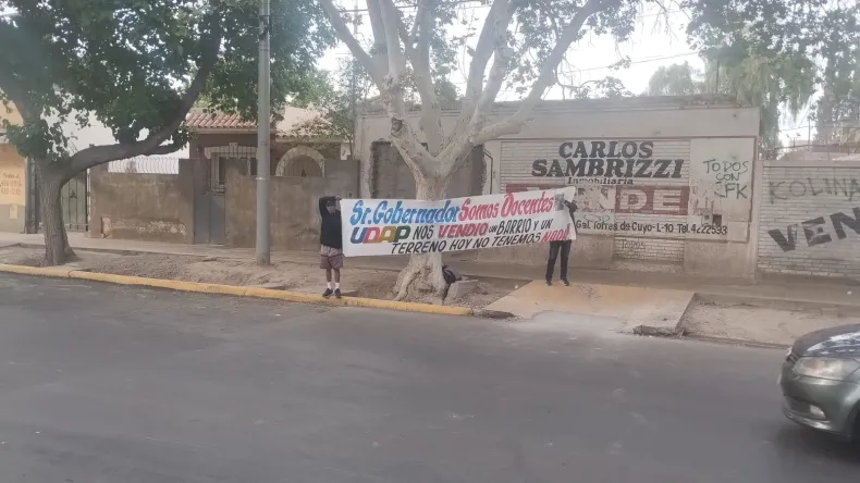 En la mañana de este viernes, un grupo de docentes sanjuaninos se congregó nuevamente para visibilizar un reclamo que persiste sin solución: la entrega de viviendas adjudicadas a través del gremio UDAP.