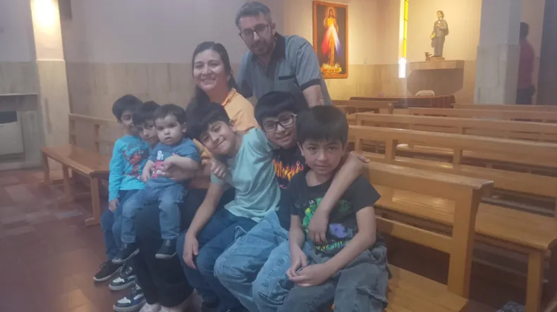 Todos los nombres de los hijos de Daniela y Ariel son bíblicos, no es casualidad porque es una familia muy católica. De hecho, el papá ya tenía a todos los niños bañados y cambiados porque hay que ir a misa de 10.00 en la iglesia Don Bosco.