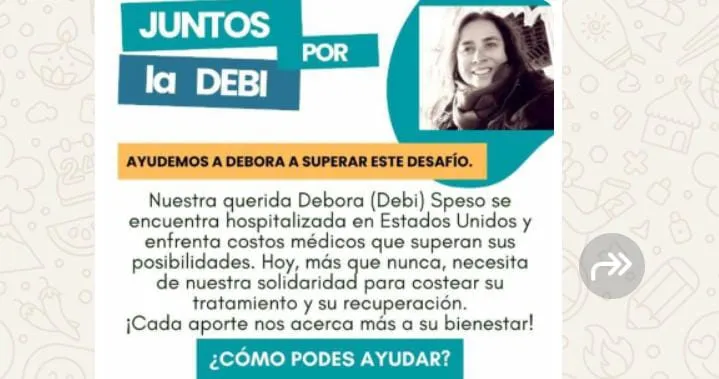 Bajo el lema "Todos por Debi", familiares y amigos, han organizado una colecta para reunir fondos para la joven sanjuanina que se encuentra internado en los Estados Unidos, padeciendo un grave problema de salud, cuyo costos de tratamiento y atención médica se hace imposible afrontar, por lo que solicitan la colaboración de todos los comprovincianos.
