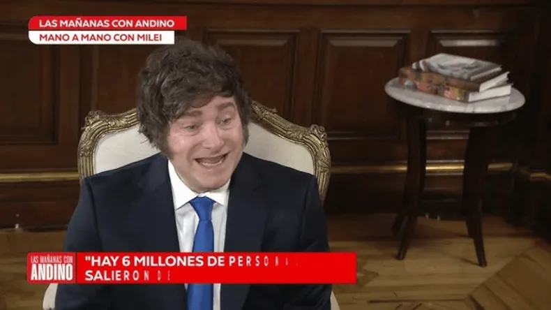 Durante la conversación, el periodista Guillermo Andino citó una frase que capta la angustia económica de muchos: "Hay gente que dice: "todo bien, pero yo no veo la recuperación económica en mi bolsillo"... Mi mes termina el día 20". La respuesta del mandatario fue contundente: "Muchas veces esas son cosas con golpes de efecto. Es más, mucho de eso fue también generado desde una encuesta trucha. Porque el punto es que hoy hay 12 millones de pobres menos".