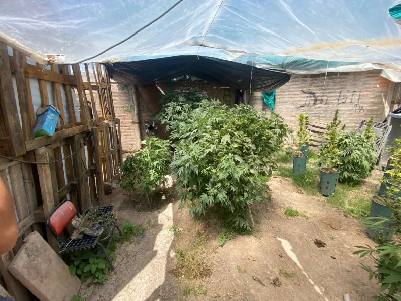 Un allanamiento en el barrio Luján de Albardón reveló un invernadero con aproximadamente 50 plantas de marihuana. La investigación se inició por un caso de amenazas y lesiones.