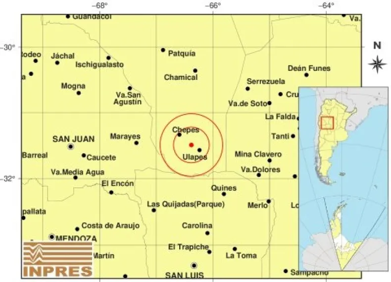 Un sismo de magnitud 4,7 se registró en la madrugada de este martes en la provincia de La Rioja, según el informe del Instituto Nacional de Prevención Sísmica (INPRES). El movimiento ocurrió a las 5:42 hora local, con epicentro a 17 kilómetros al noroeste de Ulapes y a 25 kilómetros al sureste de Chepes, a una profundidad de 146 kilómetros.