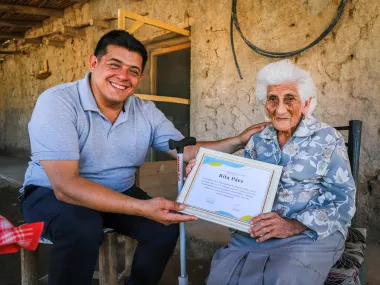 En el marco del Mes del Adulto Mayor, el intendente Matías Espejo junto al Presidente de HCD, Héctor Sánchez y el Coordinador de Gabinete, Aristobulo tejada visitó la localidad de Mogna con el objetivo de reconocer y poner en valor la trayectoria de dos mujeres que forman parte del acervo cultural de nuestro departamento: Rita Paez de 95 años y Natividad Paez de 97 años.
