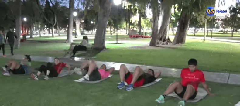 El Parque de Mayo se convierte en un espacio para la actividad física al aire libre, donde un grupo de sanjuaninos se reúne para entrenar. Coordinados por un profesor, los participantes buscan mejorar su condición física y disfrutar del ejercicio en conjunto.