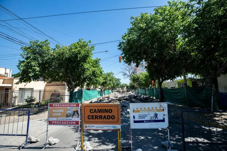 La Municipalidad de la Ciudad de San Juan, junto a la Dirección Provincial de Vialidad y OSSE, ejecuta trabajos coordinados para reparar la calzada de calle Entre Ríos entre Pedro Echagüe y Maipú. Posteriormente se realizará la reposición de la carpeta asfáltica en una superficie estimada de 1.200 m².