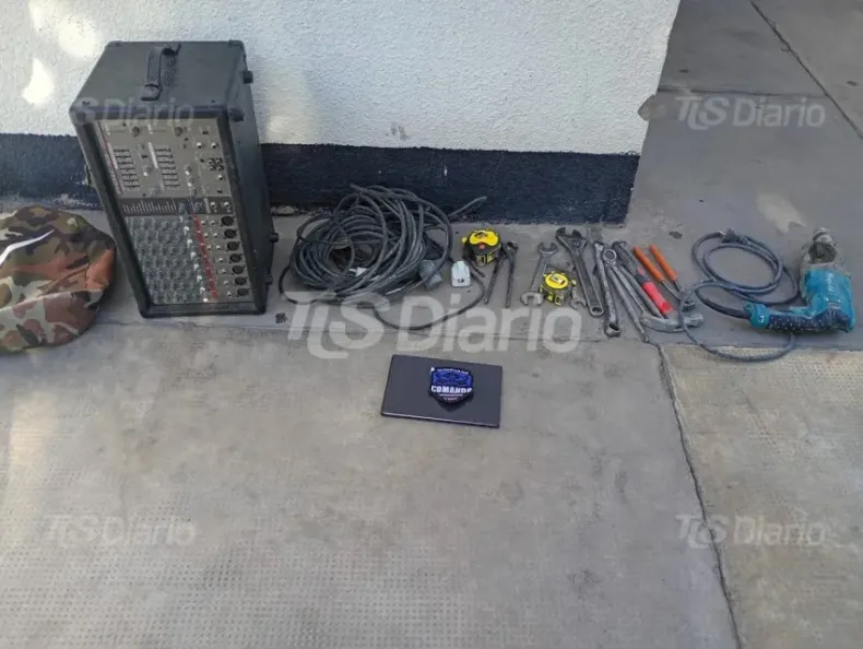 Una mezcladora de sonido, una netbook, un taladro, metros de alargue y otras herramientas de mano fueron recuperados el miércoles por efectivos del Comando Radioeléctrico Central en un descampado de Santa Lucía. Según fuentes policiales, cinco delincuentes llevaban estos elementos por el sector noreste del descampado ubicado en el cruce de calles Burgos y Juan B. Justo.