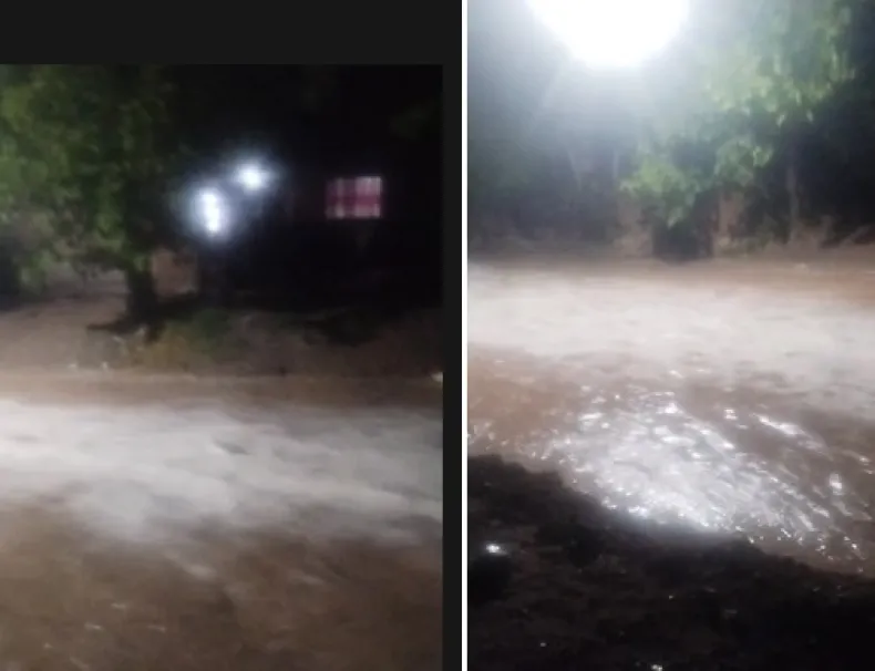 Una fuerte tormenta causó una importante crecida en Albardón, obligando a interrumpir el tránsito en el badén de Las Piedritas hasta el descenso del agua.