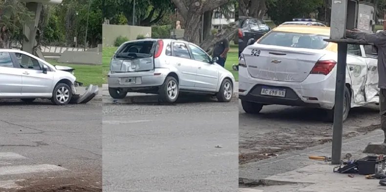 El resultado: los tres vehículos terminaron con daños severos, especialmente el Peugeot, que perdió todo el frente. El taxi también quedó con la carrocería hundida, mientras que el Corsa sufrió roturas en el sector trasero y desplazamiento hacia la cuneta.
