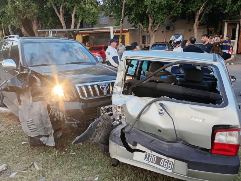 Una Toyota embistió a un Fiat Uno estacionado en la intersección de Roque Sáenz Peña y Colón. La pareja y su bebé que ocupaban el auto habían descendido minutos antes. No se registraron heridos graves.