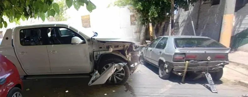 El accidente de tránsito sucedió en la intersección de Juan José Bustos y Cabot. La Amarok, según testigos, era conducida por menores de edad, choco con un Renault 19 que circulaba en dirección al norte.
