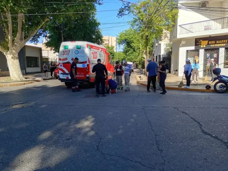 Este lunes, en la intersección de calles Sarmiento y 25 de Mayo, en Capital, una motociclista impactó contra un automóvil, generando alerta entre los peatones y provocando interrupciones en el tránsito vehicular.