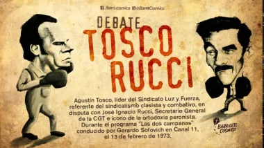 En 13 de febrero de 1973, Canal 11 de la Capital Federal puso en el aire a través del programa "Las dos campanas", el debate entre dos de los máximos dirigentes sindicales de la época: José Ignacio Rucci, secretario general de la Central Obrera de la República Argentina (CGT), y Agustín Tosco, secretario general del gremio de Luz y Fuerza de Córdoba y secretario adjunto de la Regional cordobesa de la CGT en esa época.