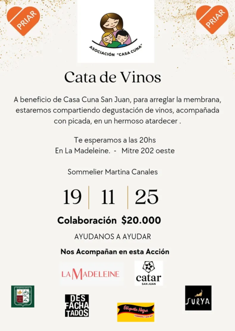 Casa Cuna, junto a PRIAR, la asociación de voluntariado del Banco Galicia, convocan a una Cata de Vinos solidaria con el fin de financiar la reparación de la vivienda que desde 1960 cuida y acompaña a bebés en situación de vulnerabilidad.