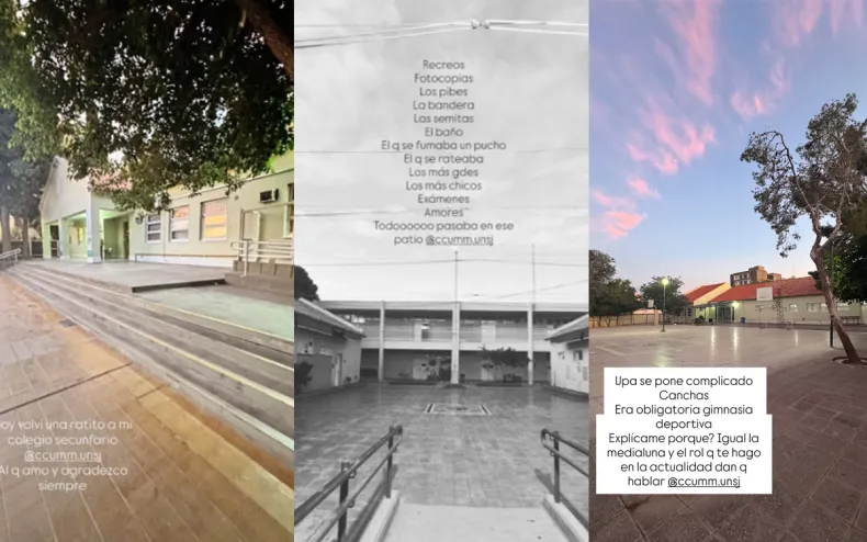 Durante la visita, Barassi grabó videos y tomó fotografías que subió a sus historias. Entre risas, mostró las canchas del colegio y bromeó sobre las clases de gimnasia: "Upa, se pone complicado. Canchas. Era obligatoria gimnasia deportiva. Explicame por qué? Igual la medialuna y el rol que te hago en la actualidad dan que hablar", escribió.