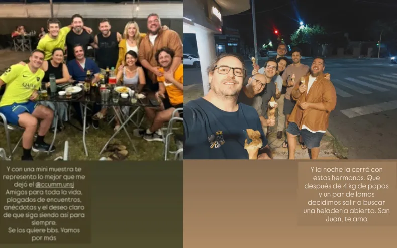 El sanjuanino también se reencontró con algunos de sus excompañeros. Después del recorrido, el grupo terminó la tarde comiendo helado en una reconocida heladería de Capital, momento que también quedó registrado en sus redes.