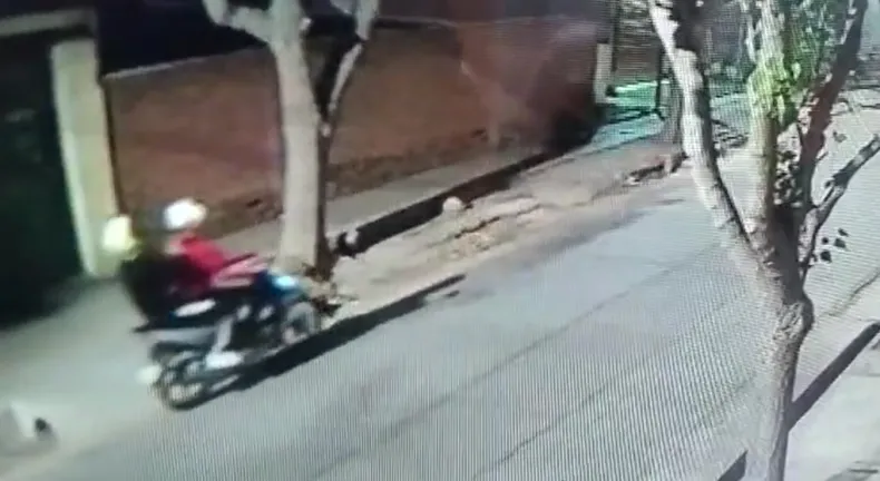 El último asalto ocurrió durante la noche y quedó registrado por una cámara de seguridad. En las imágenes se ve cómo dos motochorros sorprenden a dos hermanos que conversaban en la vereda.