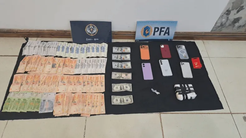 Durante la requisa, uno de los ocupantes intentó arrojar un paquete envuelto en cinta negra. Tras la autorización judicial para su análisis, se confirmó que contenía cocaína. Además de la droga, se secuestraron el vehículo, seis teléfonos celulares, 589.800 pesos, 352 dólares y otros elementos relevantes para la causa.