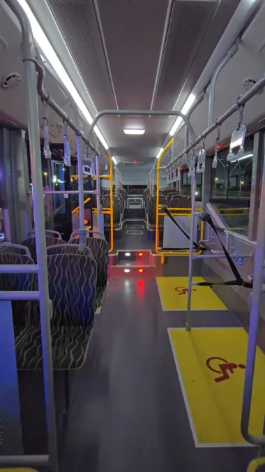 La unidad cuenta con piso súper bajo y rampa de acceso, lo que facilita el ascenso y descenso de personas con movilidad reducida. Además, dispone de espacios específicos para sillas de ruedas, promoviendo un servicio más inclusivo y pensado para las necesidades de todos los sanjuaninos.