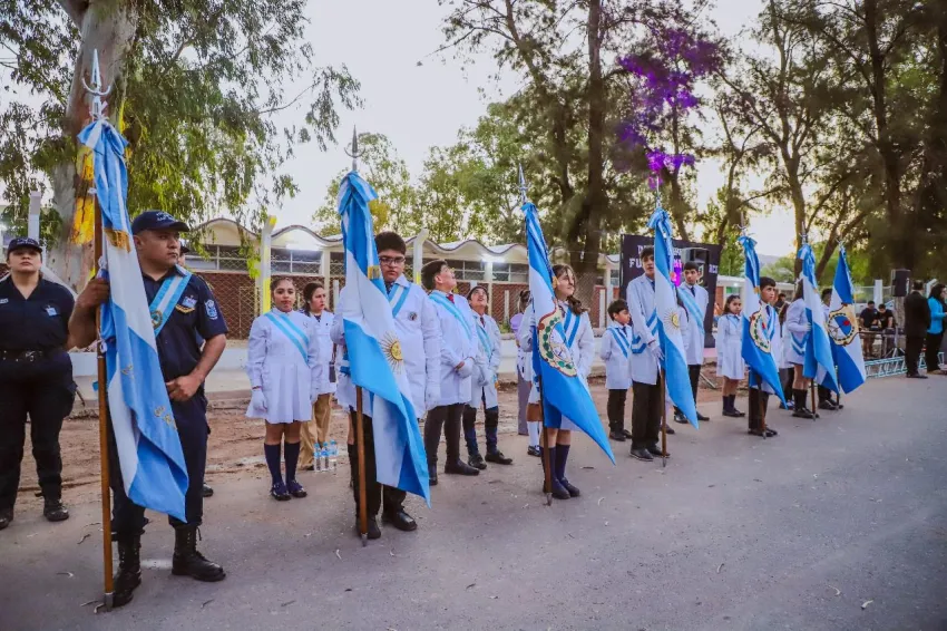 El acto oficial contó con la presencia del intendente Matías Espejo, al presidente del HCD Héctor Sánchez, funcionarios municipales, la paisana nacional de la tradicional, Abril Aciar, directivos, docentes y a toda la comunidad de Huaco, que acompañó con orgullo esta fecha tan significativa.
