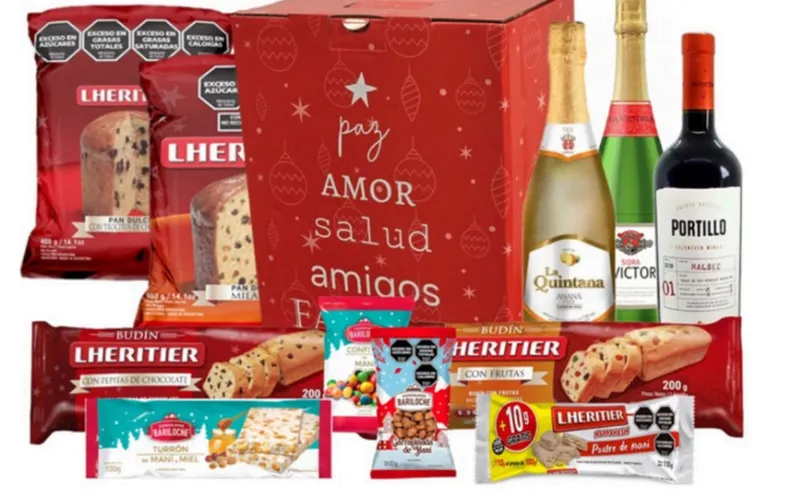 La más económica es la Caja Navideña Amarilla, que por $12.000 reúne los clásicos indispensables: sidra, pan dulce con frutas, budín, turrón, chocolate y garrapiñadas.
