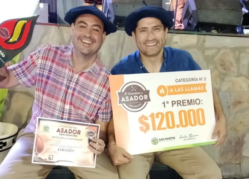 La pasión por el asado y la camaradería fueron los ingredientes principales que llevaron a Román Cortez y Martín Putelli a ganar el Octavo Concurso del Asador Sanjuanino, realizado en el Complejo Ceferino Namuncurá, en la Municipalidad de San Martín.