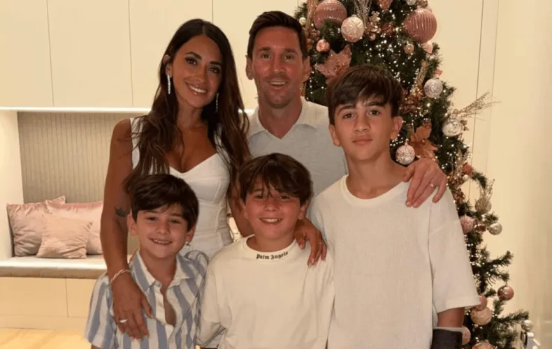 Lionel Messi despidió el 2025 y recibió el 2026 rodeado de su familia en Argentina. El astro compartió en sus redes sociales imágenes íntimas de la celebración junto a su esposa, Antonela Roccuzzo, y sus hijos, Thiago, Mateo y Ciro, con un árbol de Navidad como escenario.