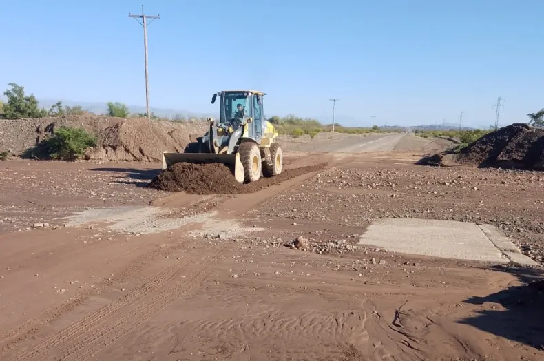 En particular, sobre la Ruta Nacional 40 Norte, en el tramo San Juan–Jáchal, personal de la división Conservación de la zona norte llevó adelante tareas de despeje, perfilado de banquinas y limpieza de badenes, especialmente en el sector de ingreso a la localidad de Mogna, una de las áreas más afectadas por las lluvias.