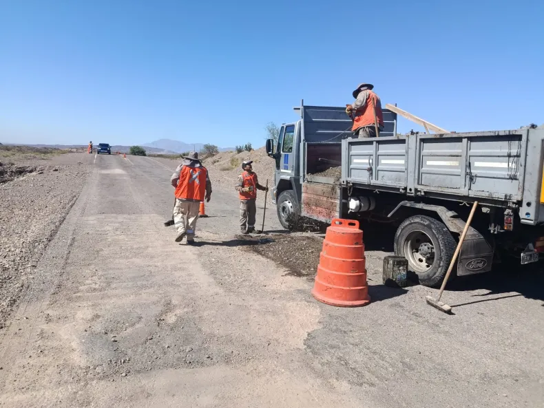 Avanzan los trabajos de bacheo en Ruta Nacional 40 a la altura de Villicum