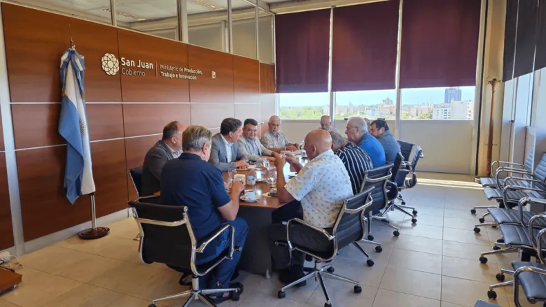 Funcionarios del Ministerio de Producción, Trabajo e Innovación encabezados por el ministro Gustavo Fernández, dialogaron con los referentes del sector viñatero de San Juan