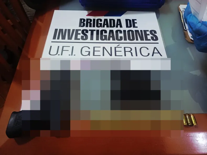 En el allanamiento se secuestraron varias armas y municiones: una pistola calibre 9 milímetros Bersa TPR9XT con dos cargadores y 16 cartuchos, una pistola calibre .45 Glock con dos cargadores y 23 cartuchos, un fusil Colt calibre .22 largo con 167 cartuchos, un aire comprimido tipo fusil Kral Arms calibre 5.5 milímetros y un pistolón Boito con 24 cartuchos calibre 14.