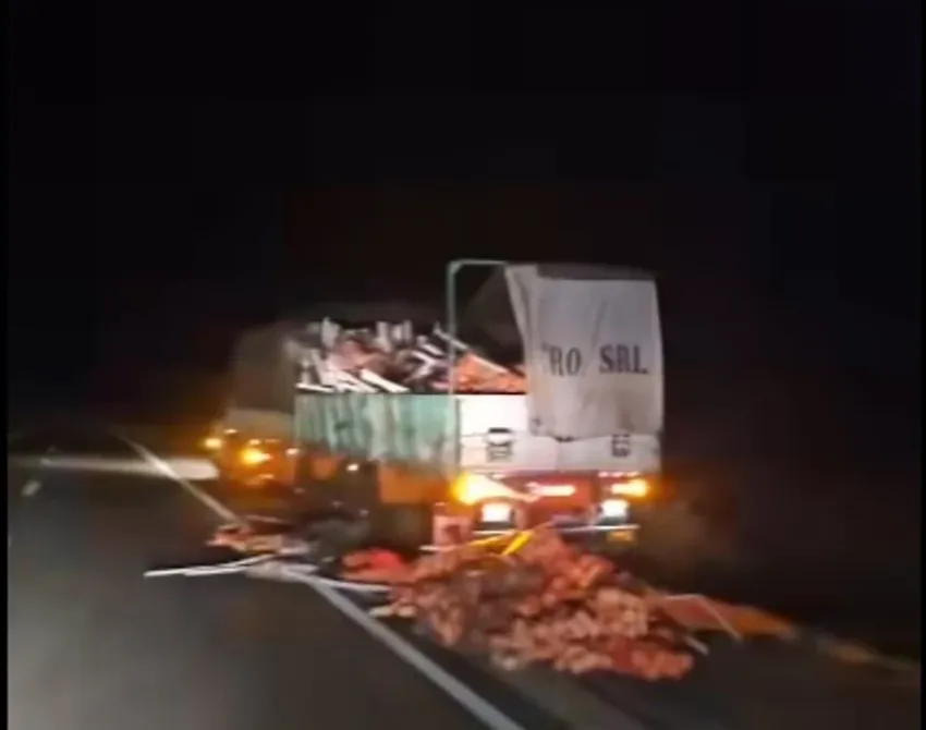 Un camión perdió parte de su carga en la noche del domingo en El Encón, departamento 25 de Mayo, provocando precaución en el tránsito por restos sobre la calzada y la banquina.