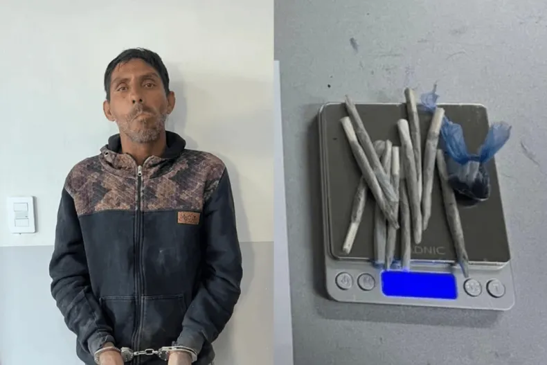 Ya en sede policial, durante la requisa, los uniformados descubrieron que el sujeto llevaba diez cigarrillos armados de manera artesanal con una sustancia vegetal, además de un pequeño envoltorio con el mismo material. Ante el hallazgo, se dio intervención a Gendarmería Nacional, que realizó el narcotest correspondiente.