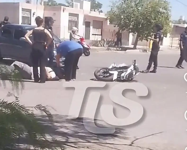 Un fuerte choque se registró este jueves por la mañana en el cruce de Tacuarí y Triunvirato, en Rawson. El siniestro involucró a un auto y una moto, y el conductor del rodado menor terminó tendido en el suelo, con asistencia médica en el lugar.