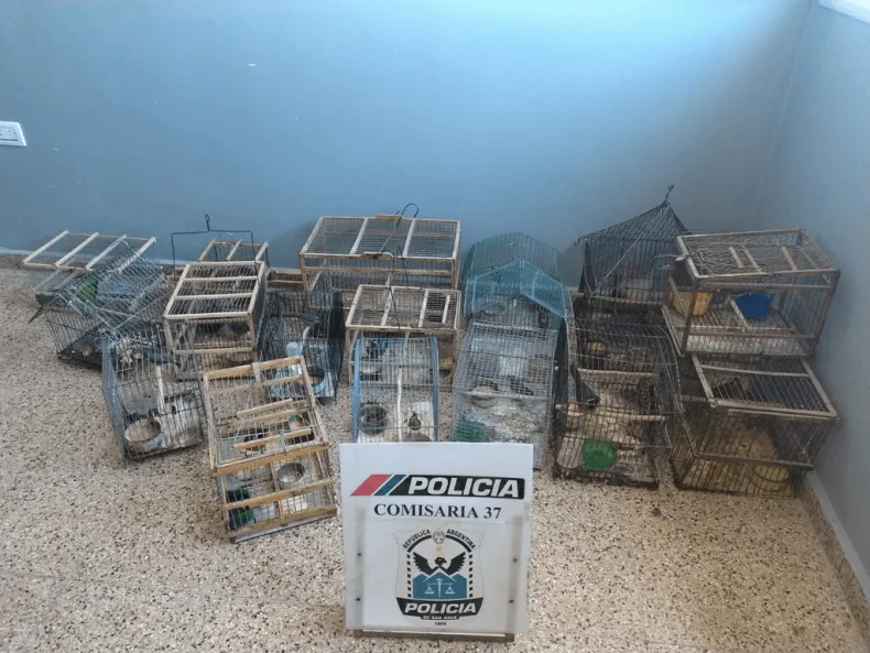 Una vez en el interior, constataron la existencia de 22 jaulas con distintos ejemplares de la fauna autóctona: tres benteveos, dos zorzales negros, un jilguero, dos corbatitas, un zorzal mandioca, un ladrillito, tres piquitos de oro, tres diucas y una cata. Además, se secuestraron tres tramperos utilizados para la captura de aves.