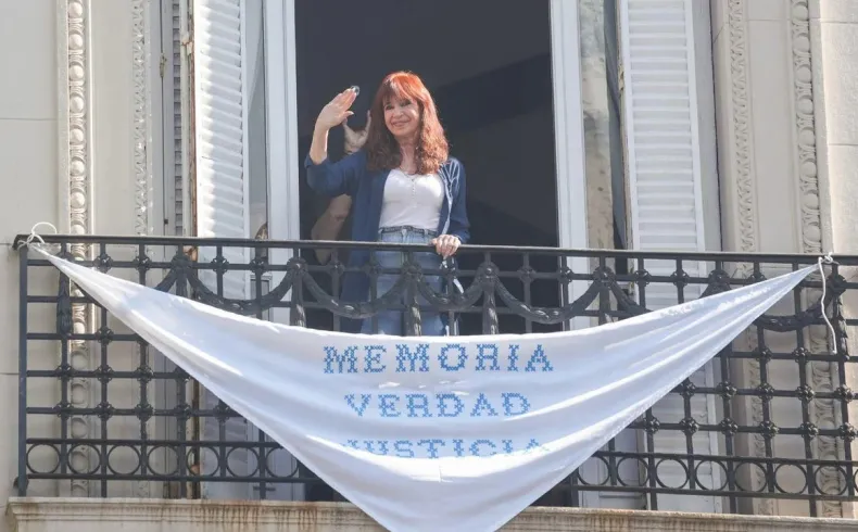 Cristina Kirchner colgó una bandera con la consigna "Memoria, Verdad y Justicia" en su balcón