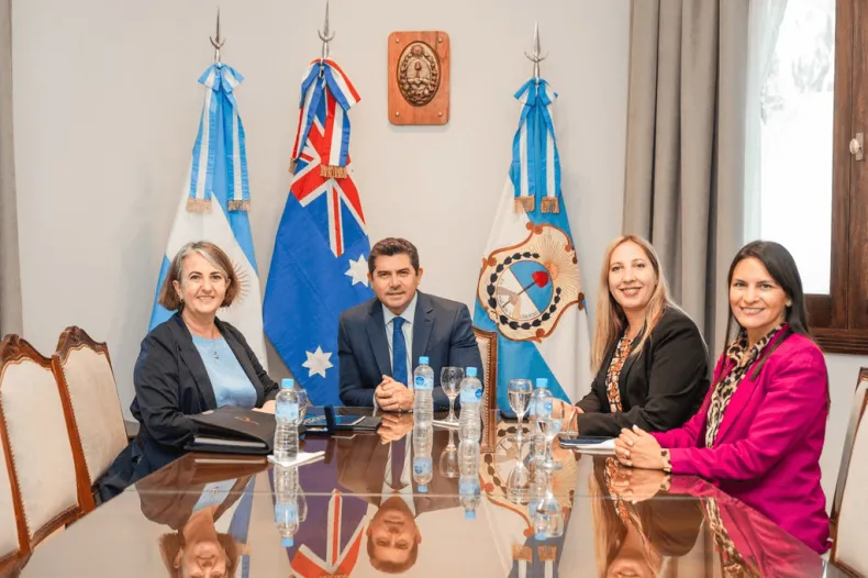 En la charla, Roberts expresó su satisfacción por la visita y puso el foco en el potencial de articulación entre ambas regiones. "Es un placer enorme estar aquí, especialmente con el señor gobernador", señaló, al tiempo que recordó su interés por el intercambio en el sector minero entre San Juan y Australia.