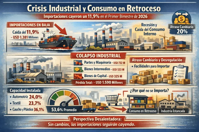 Crisis Industrial y Consumo en Retroceso: Las Importaciones Cayeron un 11,9% en el Primer Bimestre de 2026