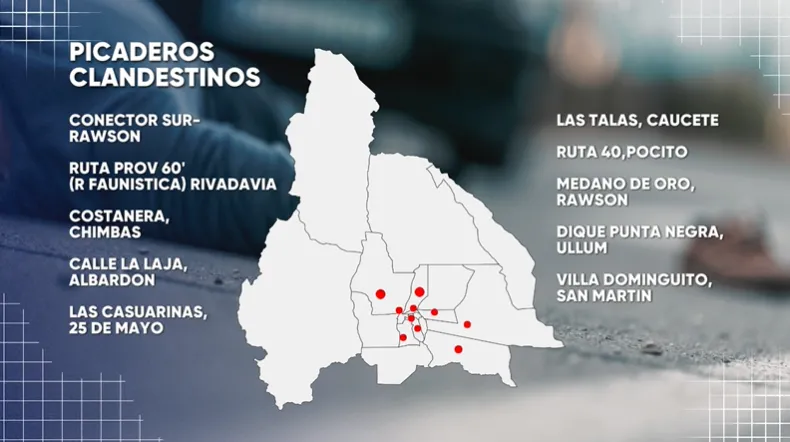 De acuerdo a relevamientos recientes, existen múltiples puntos en la provincia donde estas prácticas se repiten de manera sistemática: