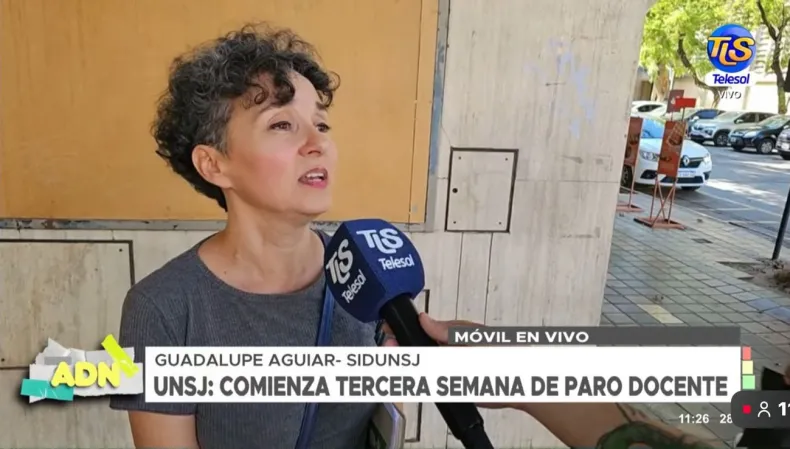 En la segunda semana de medidas de fuerza en la Universidad Nacional de San Juan, la secretaria general de SIDUNSJ, Guadalupe Aguiar, habló en vivo con TeleSol y expuso la situación que atraviesa el sector docente.