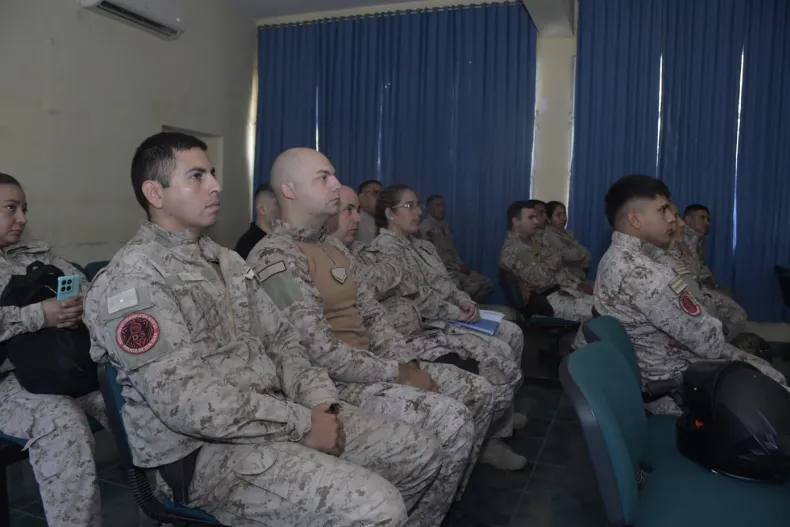 La actividad reunió a 15 efectivos de la Policía Rural, entre oficiales y un comisario, quienes intercambiaron experiencias y plantearon consultas sobre los procedimientos vigentes. La capacitación estuvo a cargo de Agr. Néstor Navarro, jefe del Servicio Veterinario de la provincia, junto con Médico Vet. Antonio Martín e Ing. Agr. Eduardo Mondaca.