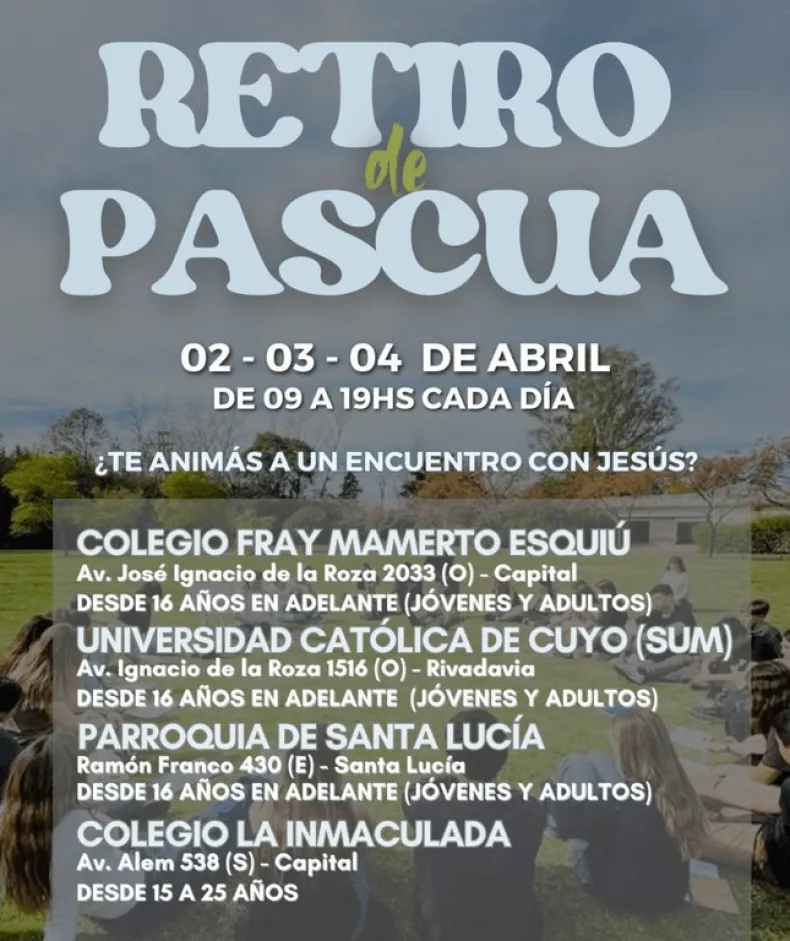 El Movimiento de la Palabra de Dios, perteneciente a la Iglesia Católica, invita a toda la comunidad a participar de los Retiros de Pascua 2026, una propuesta espiritual abierta a todos los mayores de 15 años, sin límite de edad, que busca ofrecer un espacio de encuentro con Jesús en esta Semana Santa.