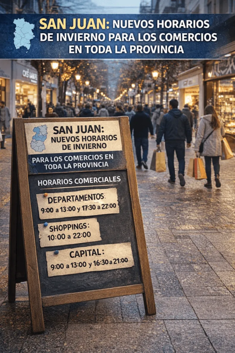 La Federación Económica de San Juan dio a conocer este 7 de abril el nuevo esquema de horarios comerciales que regirá durante la temporada de invierno en toda la provincia. La medida busca ordenar la actividad del sector y brindar previsibilidad tanto a comerciantes como a consumidores.
