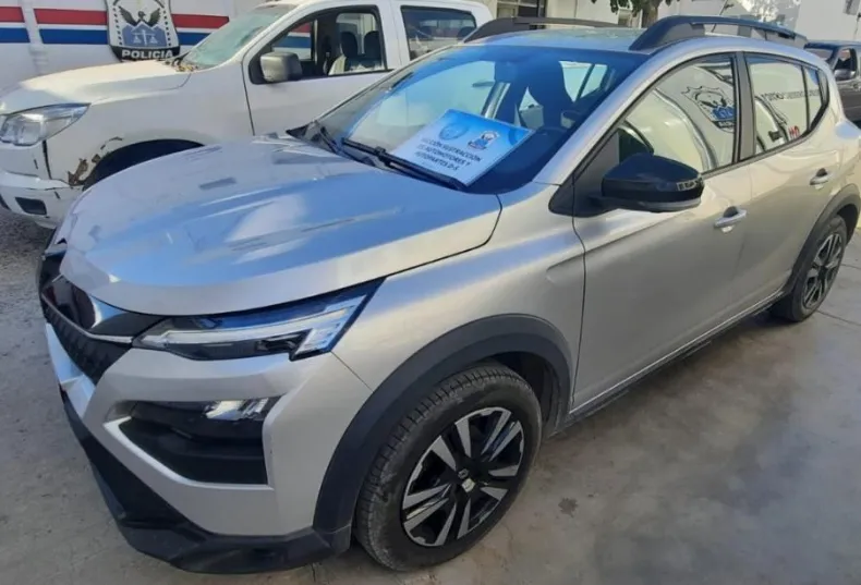 El operativo se desarrolló en calle España, entre Comandante Cabot y Avenida de Circunvalación, donde los efectivos interceptaron un vehículo marca Renault, modelo Kardian, de color gris. Durante el control, los peritos detectaron que circulaba con chapas patentes apócrifas y que la numeración identificatoria estaba limada.