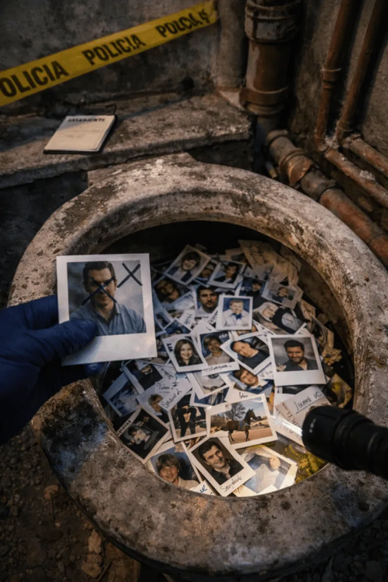 Tras despedirlas, decidió recorrer el sector y fue entonces cuando se topó con el hallazgo que originó la denuncia. En el interior del pozo del baño encontró decenas de fotografías de distintos tamaños, muchas de ellas con nombres escritos en la parte posterior y con marcas que, según describió, parecían cruces trazadas manualmente.