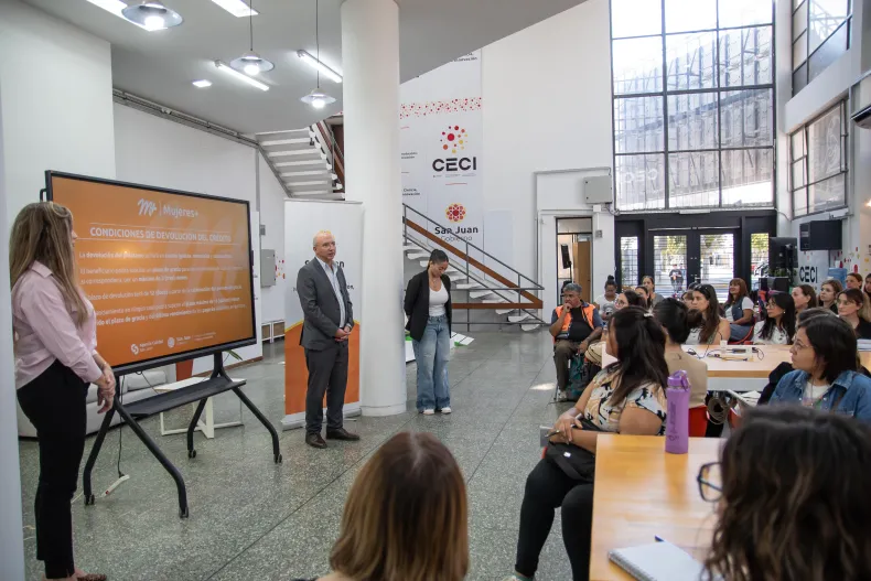 El programa Mujeres + es impulsado por el Ministerio de Producción, Trabajo e Innovación, en articulación entre la Secretaría de Industria, Comercio y Servicios y la Agencia Calidad San Juan. Ofrece créditos de hasta $2.500.000 en doce cuotas con tres meses de gracia, además de capacitaciones, mentorías y herramientas de acompañamiento para mujeres en distintas etapas de desarrollo profesional y personal.