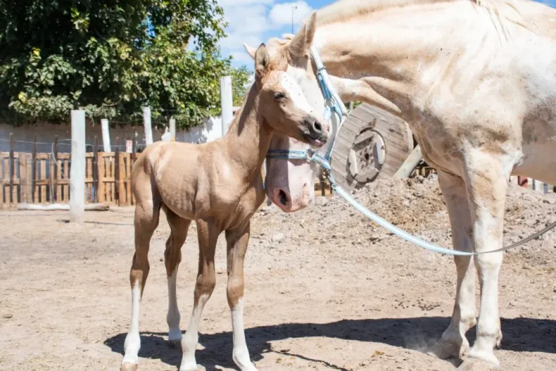 La potranca nació la madrugada del 21 de marzo y es hija de Flor de Durazno. Durante la recorrida, los chicos hicieron preguntas al comisario Andrés Vilchez, jefe de la división, y luego votaron para elegir el nombre de la nueva integrante: Mora.