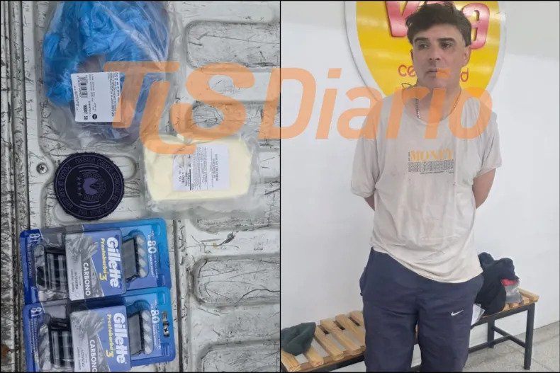 Tras dar aviso al 911, intervino la Policía y se realizó un palpado de urgencia. En sus prendas encontraron un trozo de carne oculto en el pantalón, una pieza de queso mantecoso en el bolsillo de la campera y dos blísteres de máquinas de afeitar, con un total de ocho unidades cada uno, todos con los códigos de barras dañados.