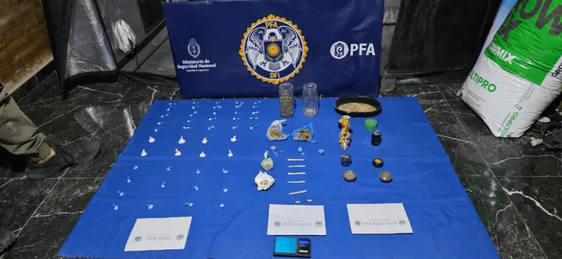 Durante el allanamiento, los efectivos secuestraron cocaína y marihuana, además de balanzas de precisión, elementos utilizados para el fraccionamiento de las sustancias y dinero en efectivo. Desde el Ministerio de Seguridad destacaron que el operativo se enmarca en las políticas de lucha contra el narcotráfico y en el rol de la fuerza como auxiliar de la Justicia.