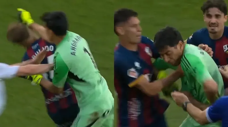 El arquero argentino reaccionó tras ver la segunda amarilla y golpeó al capitán rival en el tramo final del partido. La secuencia derivó en empujones, más expulsiones y un desenlace completamente desordenado.