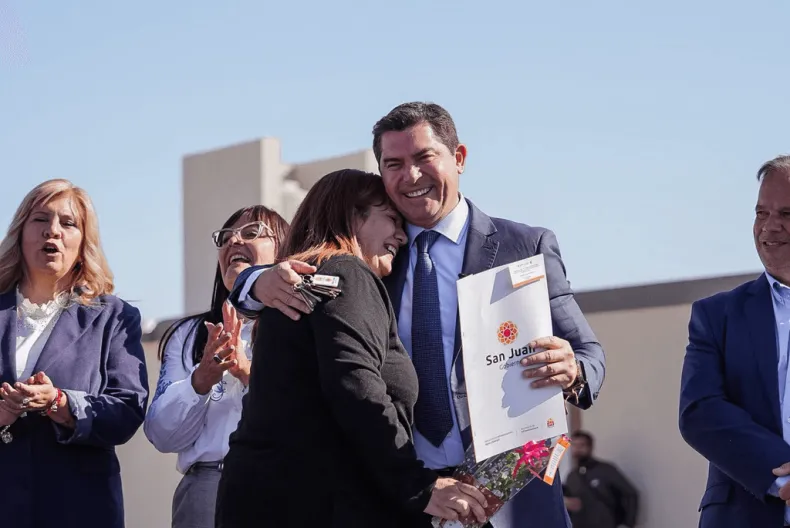 El gobernador participó del acto de adjudicación de un nuevo complejo habitacional en Chimbas, donde 46 familias accedieron a su vivienda propia. La obra fue ejecutada con fondos provinciales e incluyó urbanización integral y unidades adaptadas.